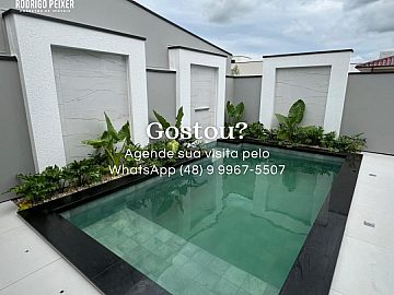 ÓTIMO ACABAMENTO,LIVING COM PÉ DIREITO DUPLO, PISCINA DE CONCRETO, TERRENO DE ESQUINA NO MELHOR LOTEAMENTO DE TIJUCAS/SC.