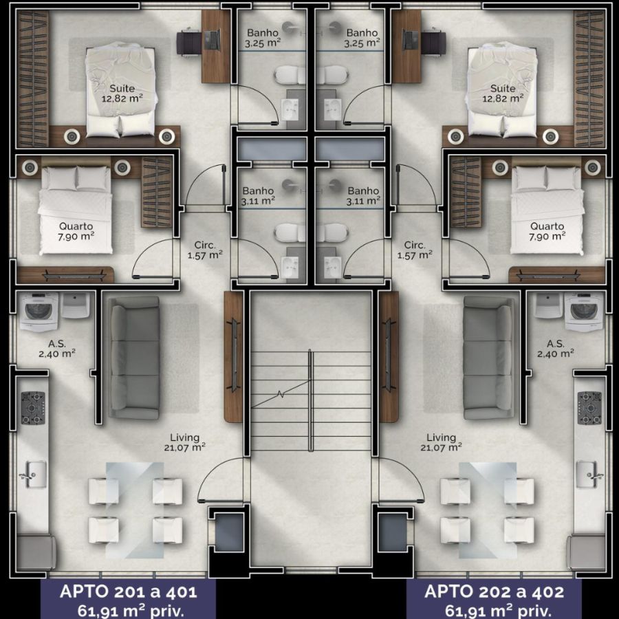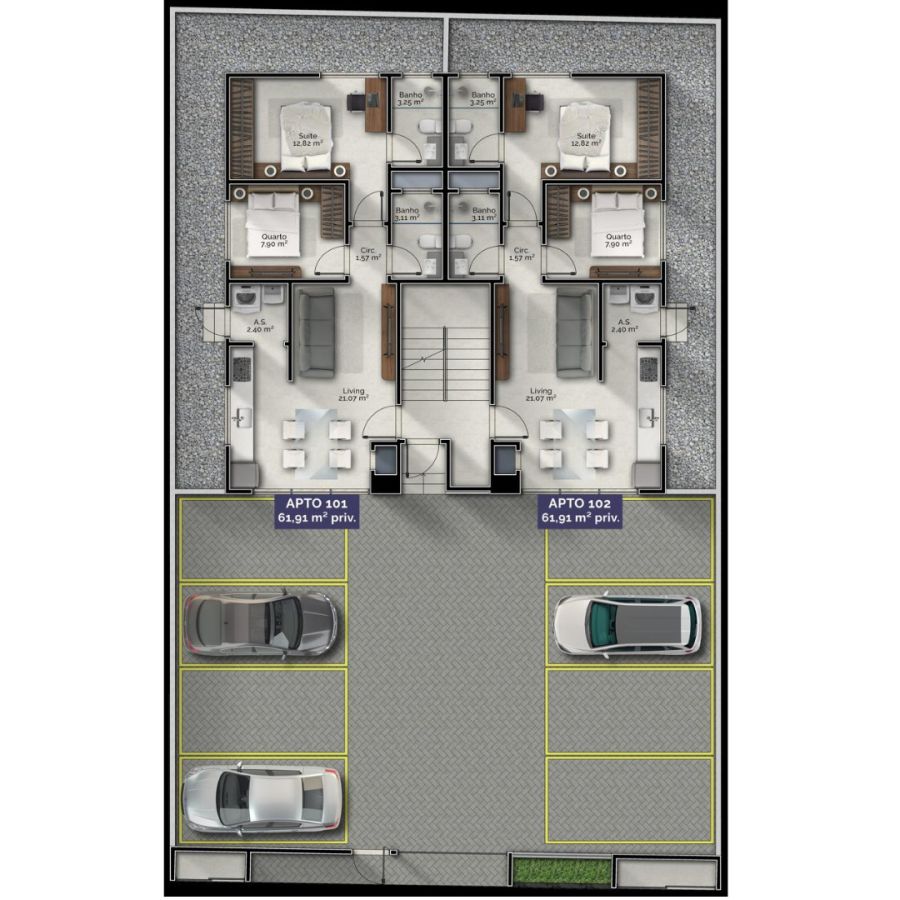 61,91m² privativos