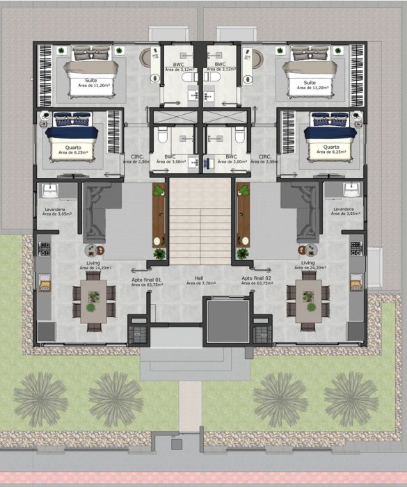 - Área Privativa: 63,75 m²